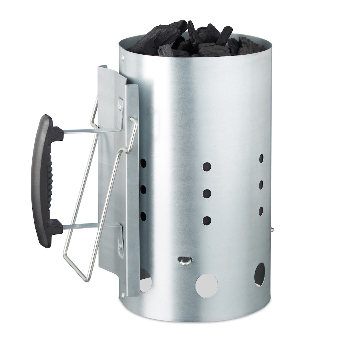 Relaxdays XL Anzündkamin, aus Stahl, Grillkohleanzünder für BBQ, Kamin, Grills, HxD: 30 x 19 cm, Grillstarter, silber