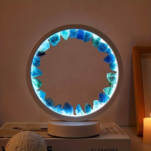 Lampada da comodino ricaricabile a led, lampada da notte con cluster di quarzo ametista naturale, lampada da scrivania per camera da letto, luci decorative circolari a cerchio.