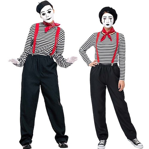 Costume di Carnevale 2026 Mimo artista Mimo Clown Carnevale Circo Cosplay Adulti Per uomo Per donna Unisex Halloween Carnevale Settimana del libro Feste Performance Abbigliamento da Casa Costume di