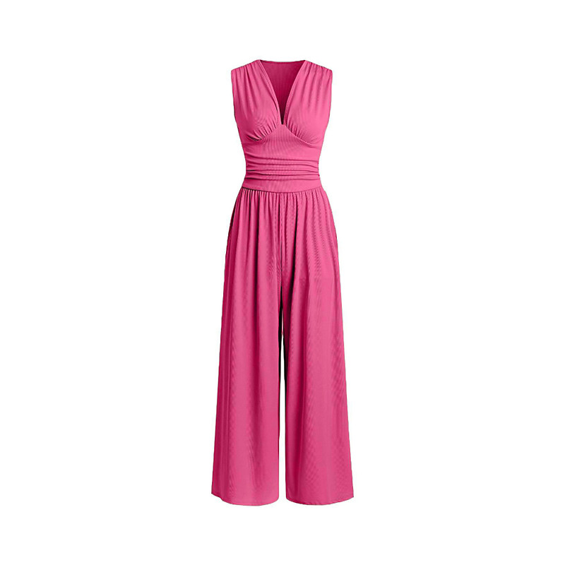 Women's Normal Jumpsuit Active Solid Color Sleeveless Wide Leg V Neck Pleated Daily Vacation Loose Fit Black Pink Army Green Summer