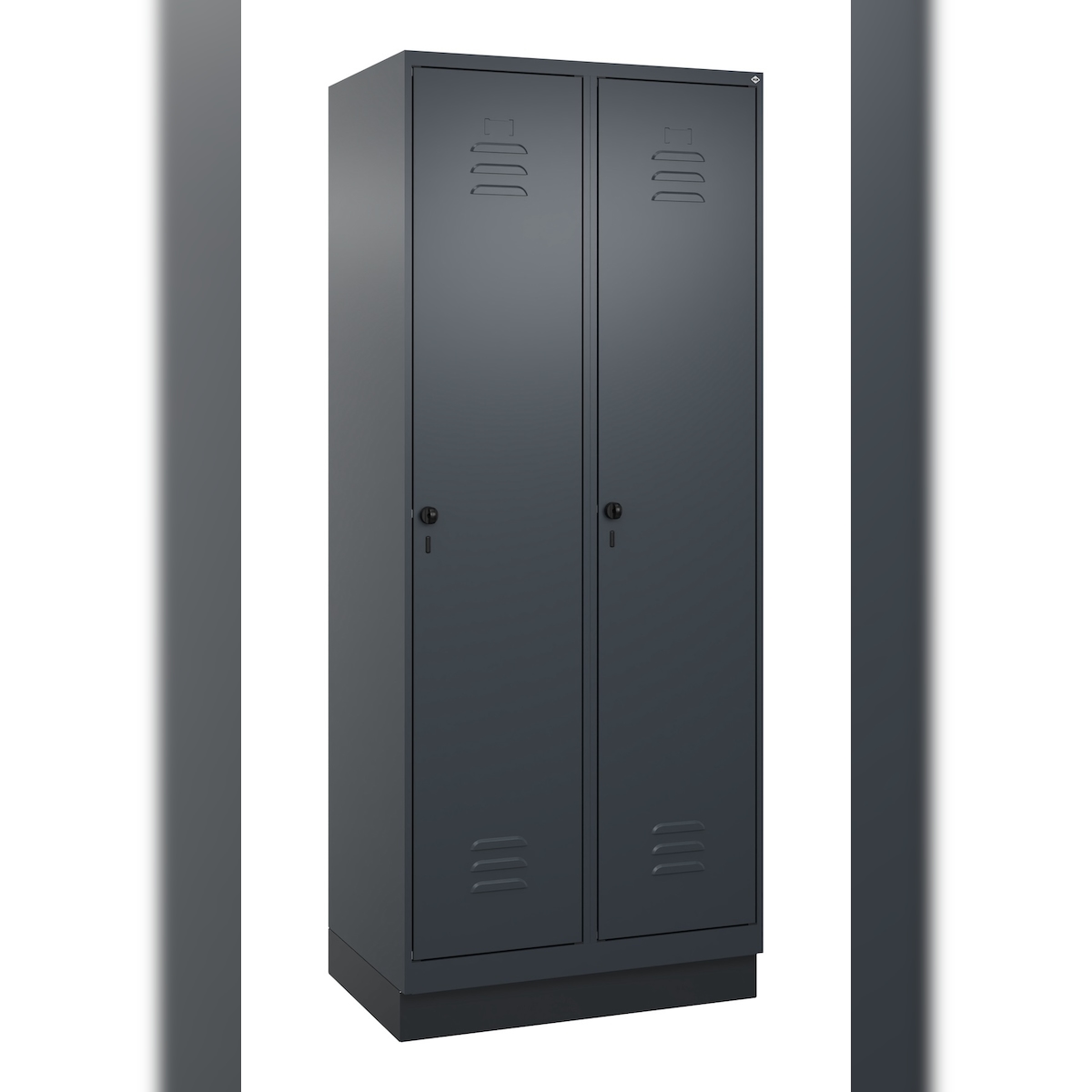 C+P Z-Spind Classic PLUS, Sockel, 2 Abteile, HxBxT 195x30x50cm, Zylinderschloss, Anthrazit von PROREGAL
