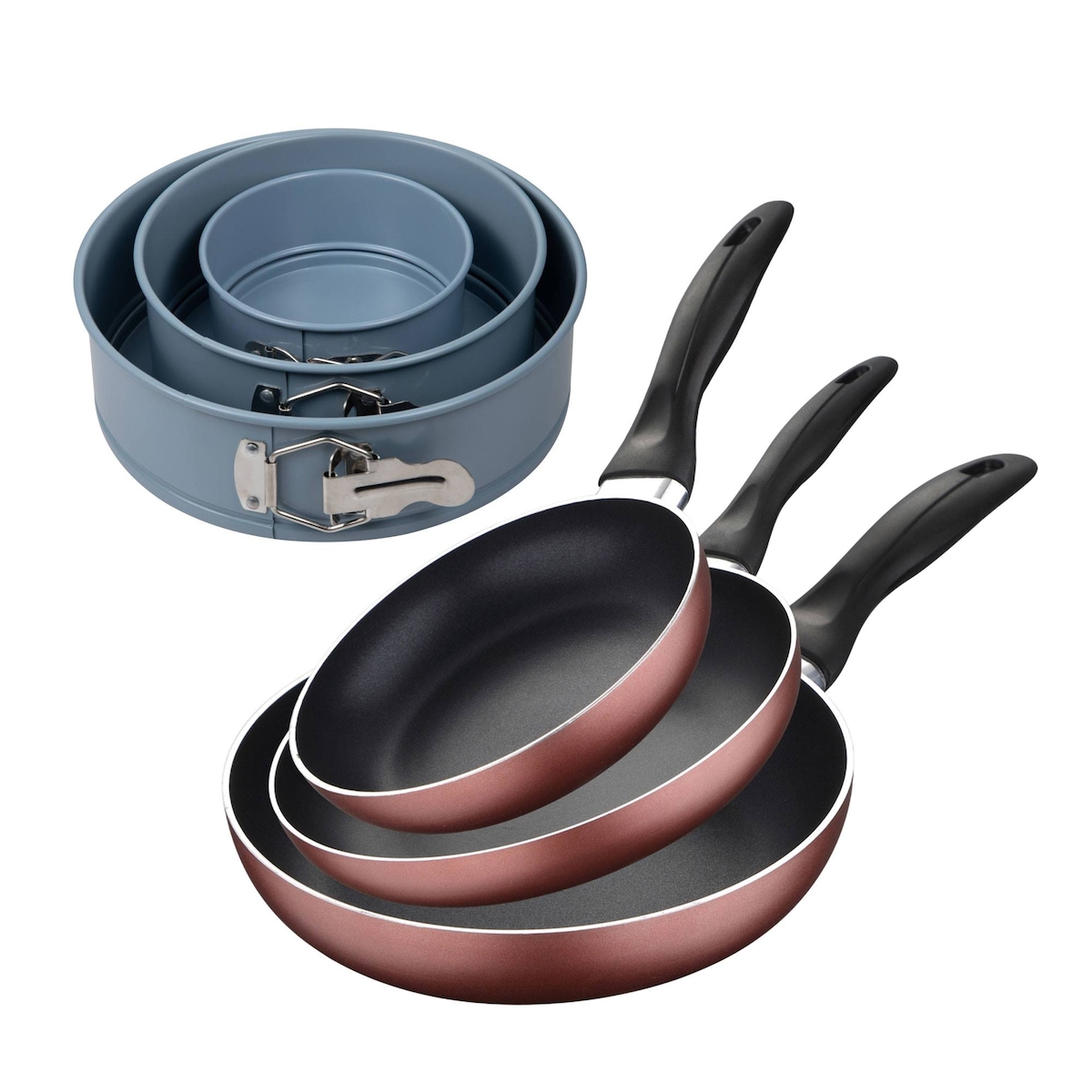 BERGNER - Set aus 3 Pfannen Ø16/Ø20/Ø24 cm gepresstes Aluminium Himmelblau 3-teiliges Messer-Set mit Messerblock aus Edelstahl