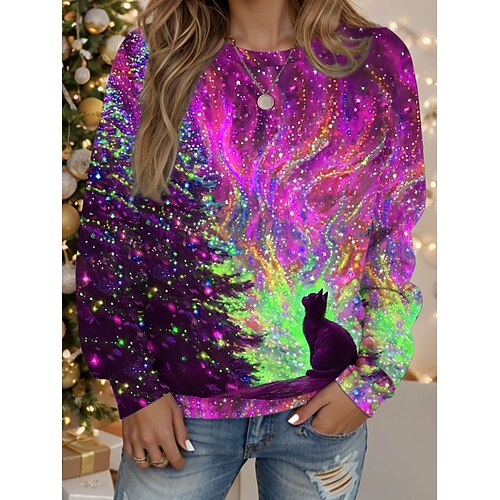 Felpa Donna Pullover Grafica Animale Albero Moda Casual Manica Lunga Collo Tondo Regolare Top Giornaliero Stampa Blu Viola Verde Primavera Autunno Inverno