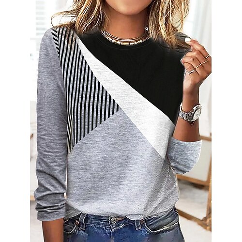 Per donna Maglietta Grafico Geometrico Astratto Moda Elegante Classico Manica Lunga Girocollo Top Regolari Quotidiano Stampato Blu Verde Grigio Estate Primavera Autunno Inverno