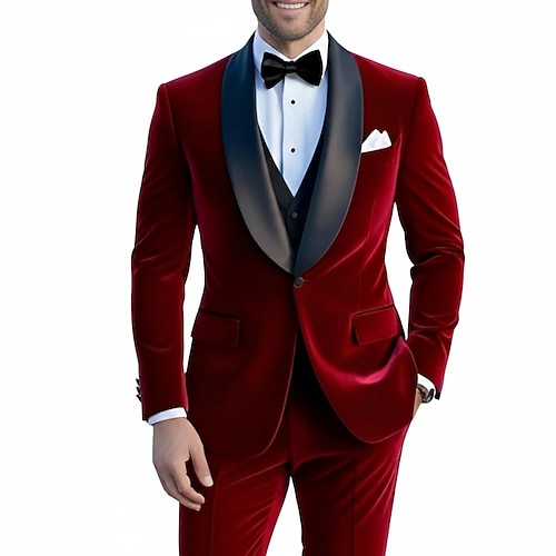 Herren Lässig Partyanzüge Schalkragen Rote Grün Mode Täglich Einfarbig Figurbetonter Schnitt 2-teilig Einreiher - 1 Knopf