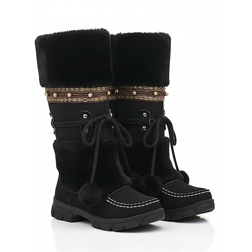 Damen-Winterstiefel aus Kunstpelz – warme Schneestiefel mit Bommel und verziertem Design für die Freizeit und den Outdoor-Bereich