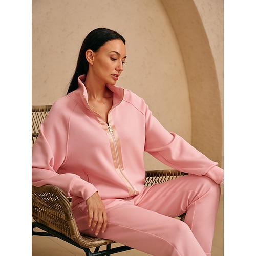 Per donna Attivo Streetwear Set di Pantaloni Bolero Top Manica Lunga Girocollo Tinta unica Coulisse All'aperto Vacanza Quotidiano Nero Rosa Verde militare Autunno Vestibilità regolare