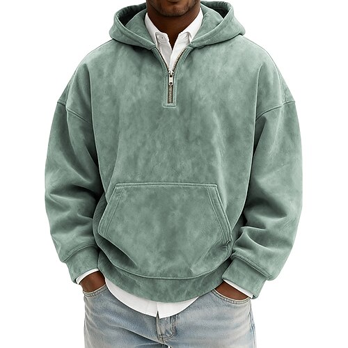 Per uomo Felpa con cappuccio Maglione Felpa con cappuccio e zip corta Blu Nero Verde chiaro Rosa Verde militare Con Cappuccio Semplice Tasca a marsupio Casuale Quotidiano Sport Outdoor Vintage Cool