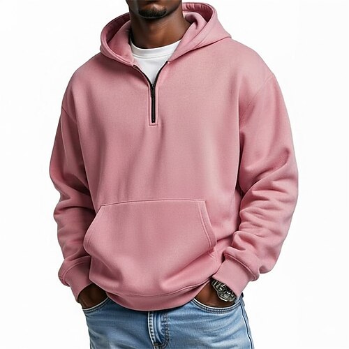 Per uomo Felpa con cappuccio Maglione Felpa con cappuccio e zip corta Nero Rosa Verde militare Blu Reale Cachi Con Cappuccio Semplice Tasca Zip a un quarto Sport Outdoor Casuale Quotidiano