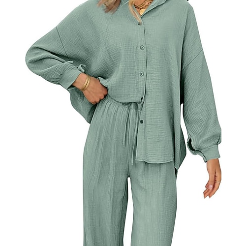 Per donna Elegante Caldo Vintage Set di Pantaloni Bolero Top Manica Lunga Colletto a Camicia Semplice Arricciato Patchwork Casuale Quotidiano All'aperto Vino Verde militare Rosa scuro Autunno