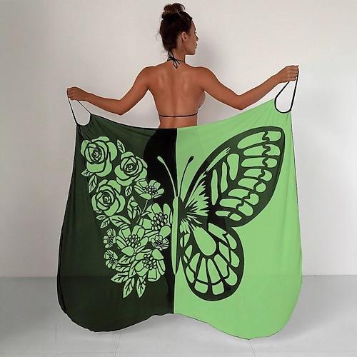 Schmetterlings-Strandtuch, Sarong-Wickelkleid, Spaghettiträger-Strandbekleidung, leichtes Strandkleid für Damen in den Größen S bis XL