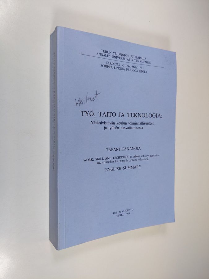 Tapani Kananoja : Työ, taito ja teknologia : yleissivistävän koulun toiminnallisuuteen ja työhön kasvattamisesta = Work, skill and technology : about