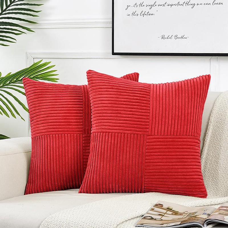 Plush Cross-Stitched Corduroy Decorative Toss Pillows Cover Bohemian Rustic Decor Soft Square Cases for Sofa Bed