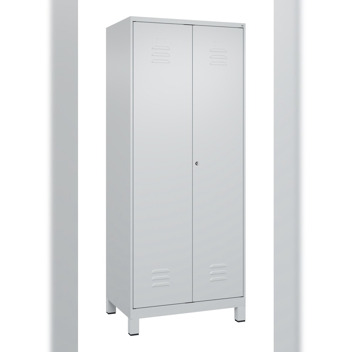 C+P Aufbewahrungs Doppel-Spind Classic PLUS, Füßen, 2 Abteile je 4 Fachböden, HxBxT 195x80x50cm, Zylinderschloss, Hellgrau/Hellgrau von PROREGAL