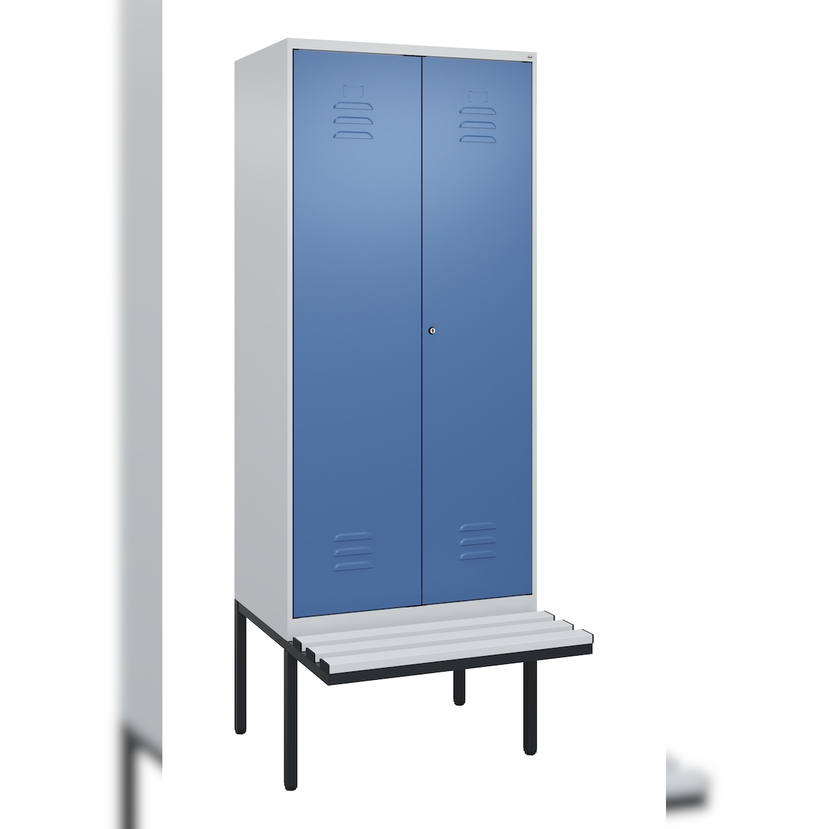 C+P Spind Classic PLUS, Kunststoff schwebende Sitzbank, 2 Abteile, HxBxT 212x80x82cm, Zylinderschloss, Hellgrau/Fernblau von PROREGAL