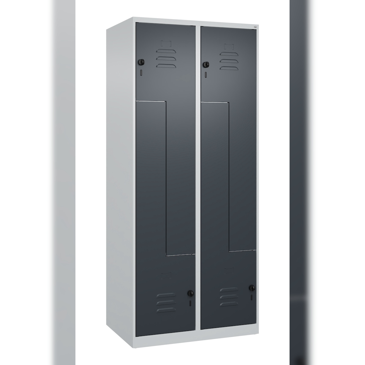 C+P Spind Classic PLUS, Sockel, 2 Abteile, HxBxT 195x60x50cm, Sicherheitsdrehriegel, Anthrazit/Hellgrau von PROREGAL