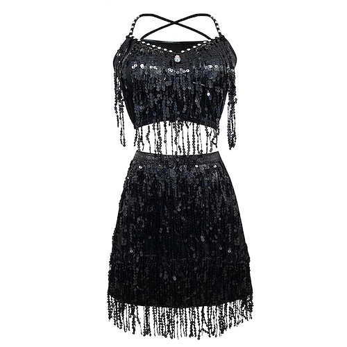 Abbigliamento da danza Samba del Carnevale di Rio Gonne da danza del Carnevale con paillettes e frange costume per performance da festa a tema per donne senza maniche in poliestere costume per