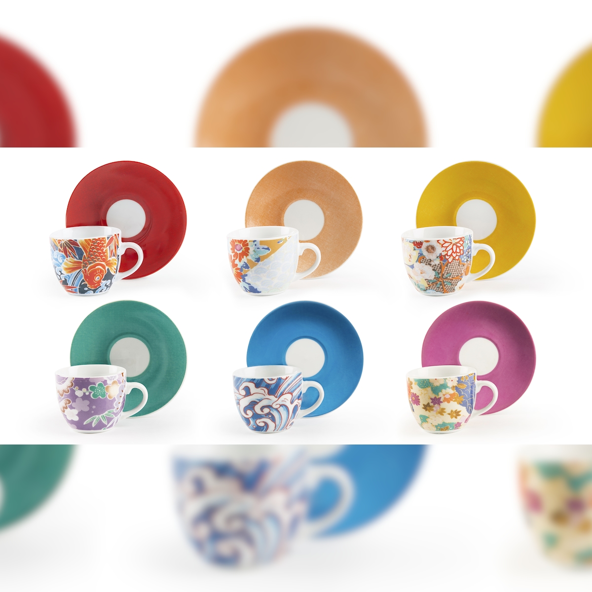Excelsa Set mit 6 Espressotassen mit Untertassen Kimono Porzellan 7 cl Bunt