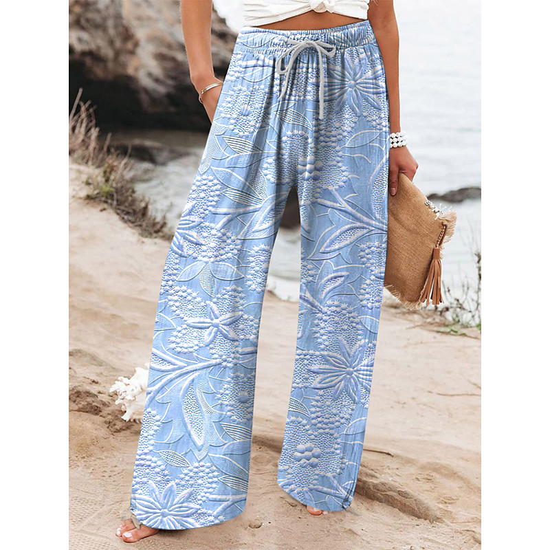Women's Wide Leg Chinos Baggy Pants Vacation Vintage Fashion Full Length High Waist Floral Graphic Printing Soft Breathable Micro-elastic Formal Vacation Street Pink Blue Green Summer Spring Loose Fit