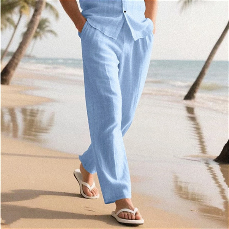 Men's Linen Pants Trousers Summer Pants Baggy Pants Drawstring Elastic Waist Straight Leg Plain Comfort Breathable Full Length Daily Holiday Beach Vacation Fashion Denim Blue Light Green Inelastic