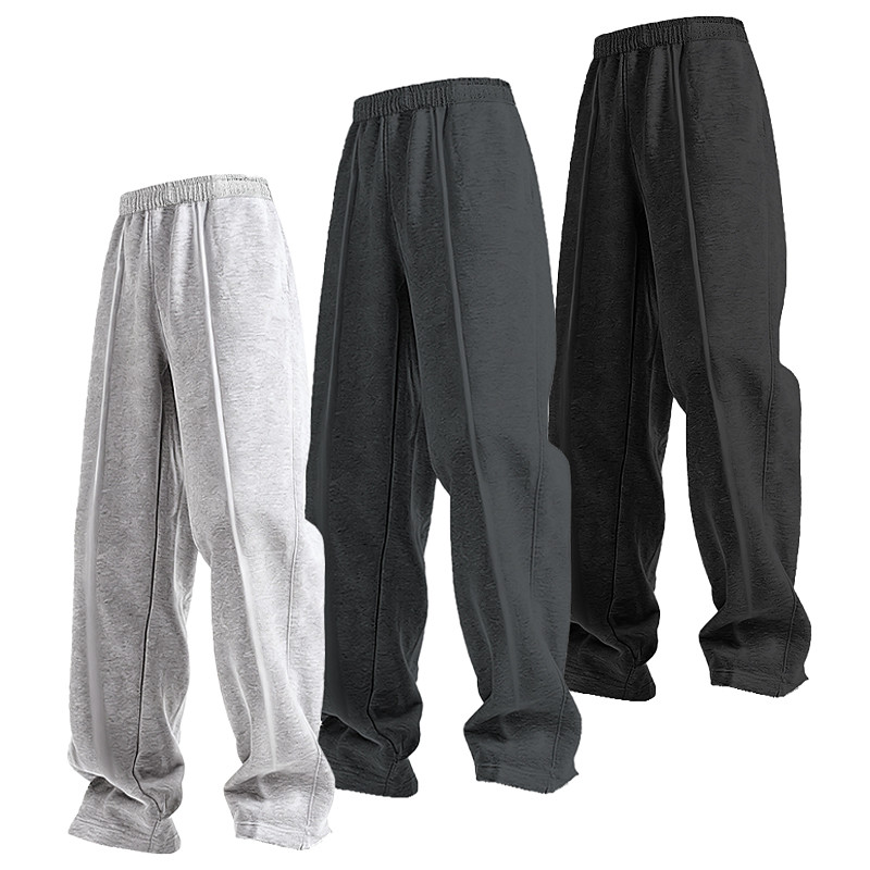 Multi Packs 3pcs Men's Dark GreyLight GreyBlack Baggy Pants Straight Leg Sweatpants Pleated Pants Drawstring Elastic Waist Plain Vacation Daily Wear Polyester Spring