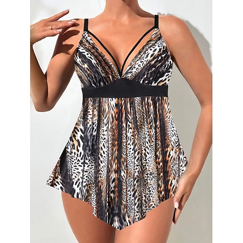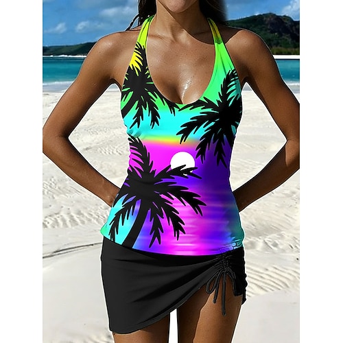 Per donna Costumi da bagno Tankini Gonna Costume da bagno Coulisse Elegante Vacanza Floreale Grafico Collo a U Senza Maniche Costumi da bagno