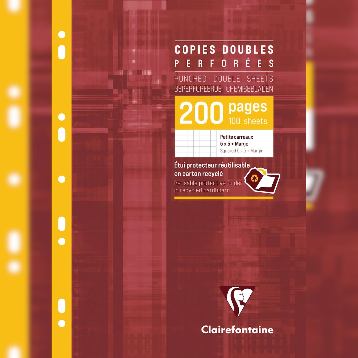 Clairefontaine 5x Packung mit 100 Blatt Kanzleibogen gelocht DIN A4, 90g, kariert mit Rand - 47122C