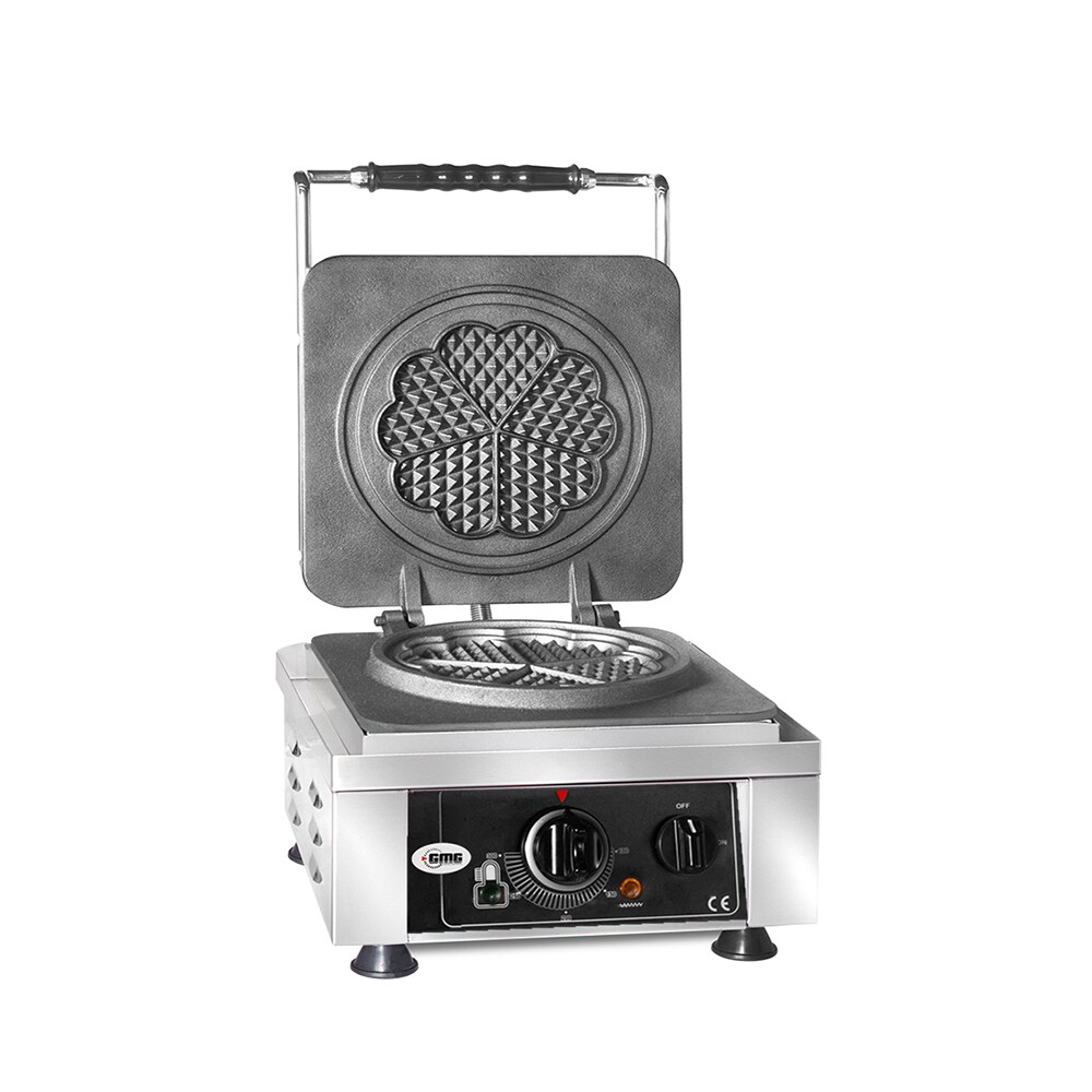 GMG - Waffeleisen Amore-M - 1x Ø 17cm - 50° bis 300°C - Feste Backplatte aus Gusseisen - Umlaufende Fettfangrinne - Gehäuse Edelstahl
