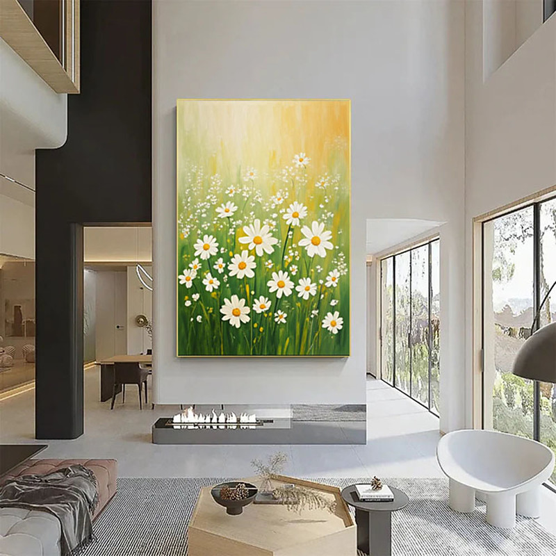 oil painting handmade Wildflower Meadow Painting On Canvas Textured Daisy Field Wall Art Spring Floral Wall Art Hand-Painted Nature Artwork Living Room Wall Art