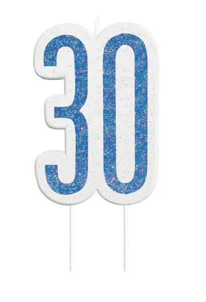 Kerze blau & silber Zahl 30