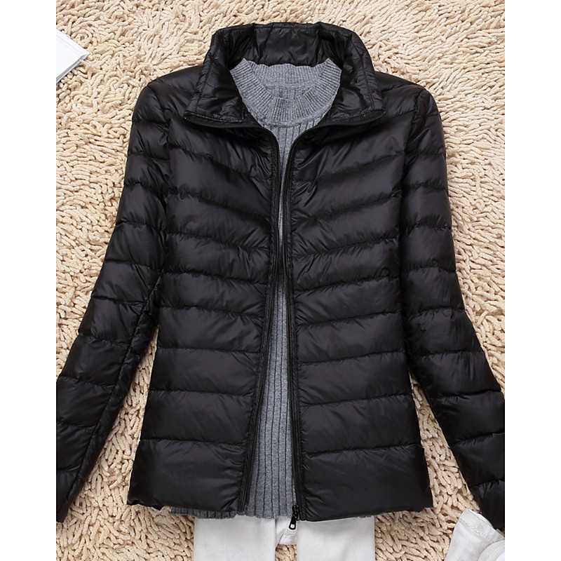 Women's Down Jacket Puffer Jacket Warm Comfortable Zipper Pocket Casual Plain Holiday Casual Daily Weekend Zipper Regular Stand Collar Regular Fit Long Sleeve Outerwear Black White Red Fall Winter