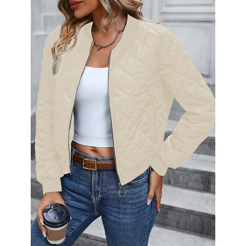 Women's Jacket Warm Comfortable Zipper Pocket Fashion Plain Street Weekend Zipper Regular Crewneck Regular Fit Long Sleeve Outerwear Navy White Wine Fall Winter