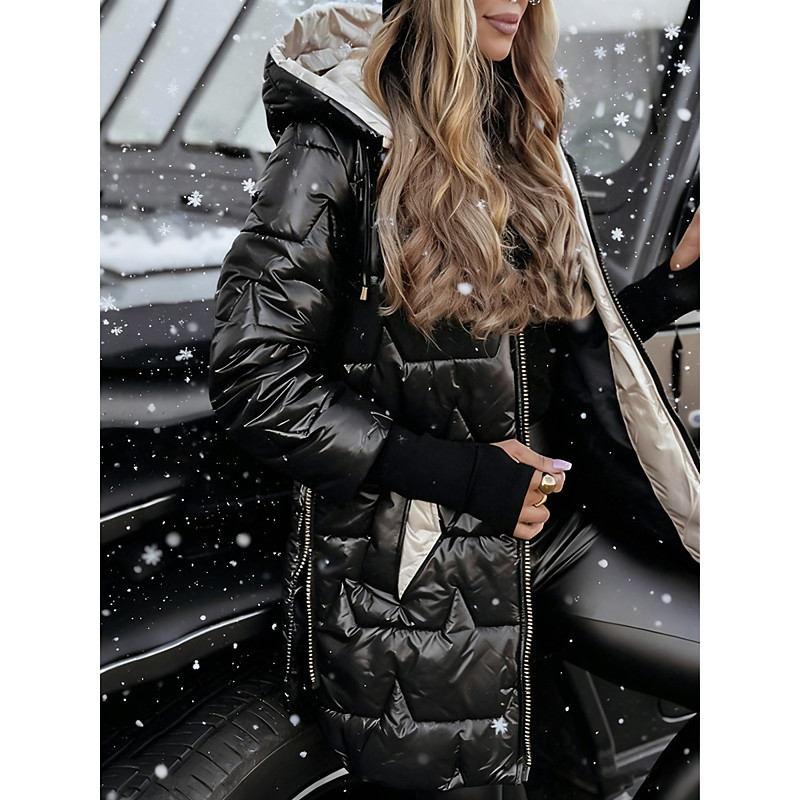 Women's Down Jacket Puffer Jacket Quilted Jacket Warm Comfortable Zipper Pocket Fashion Casual Plain Street Daily Wear Going out Zipper Regular Hooded Regular Fit Long Sleeve Outerwear Black