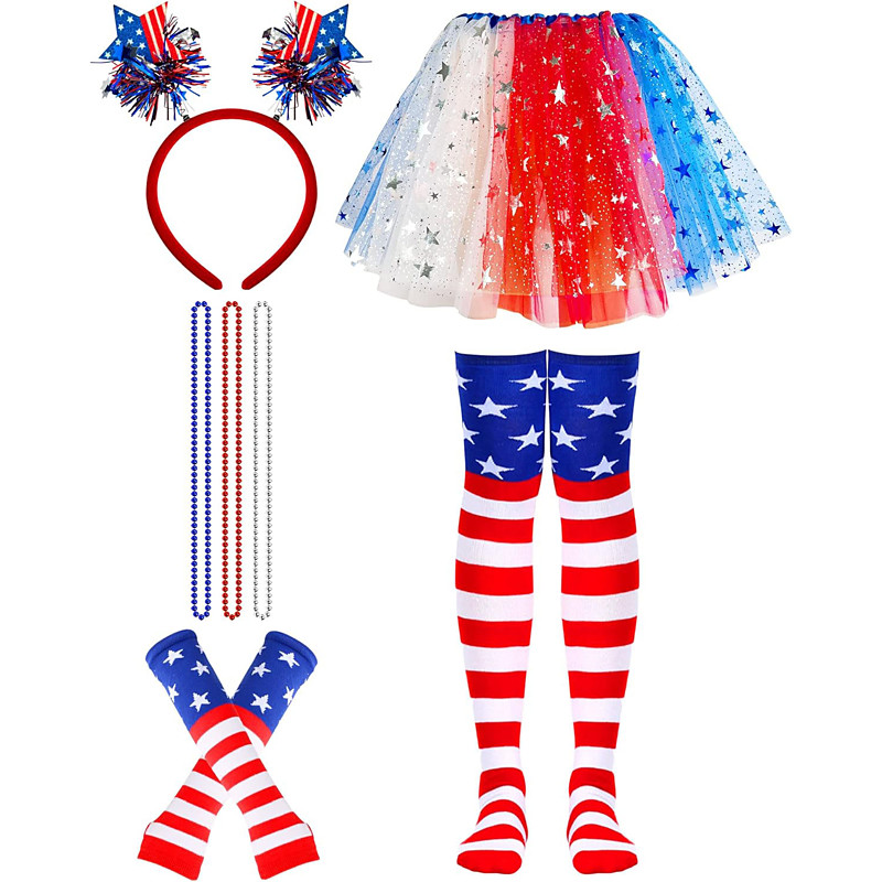 Disco 1980s Knee Length Petticoat Hoop Skirt Tutu Under Skirt with Accessories Fancy Dress Girls' Halloween Carnival Masquerade Independence Day American 250 4th of July Kid's Skirt Stockings More