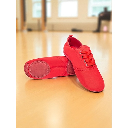 Women's Red Canvas Jazz Dance Shoes – Soft Sole Slip-On Ballet Flats for Latin, Modern, and Stage Performances