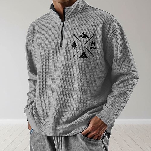 Per uomo Campeggio Nido d'ape Felpa Quotidiano Classico Casual Da caccia Collo alla coreana Zip a un quarto All'aperto Casa Ufficio Lavoro Nero Giallo Blu Marrone Grigio Con zip Autunno Inverno