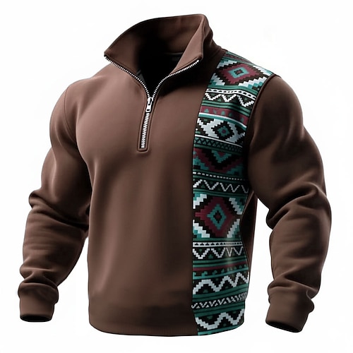 Per uomo Geometrico Plaid Tribale Felpa Sport Moda Casual Con cerniera Casa Abbigliamento casual alla moda Lavoro Feste Blu azzurro cielo Marrone Verde Autunno Tutte le stagioni progettista S M L XL