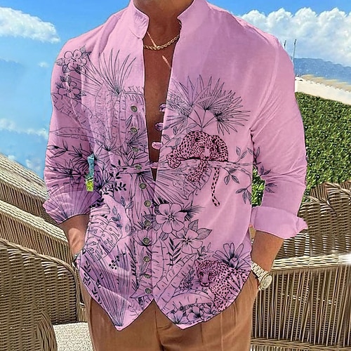Per uomo Floreale Camicia Camicia con Bottoni Manica Lunga Moda Designer Casual Vacanza Quotidiano Uscire Autunno Primavera Estate Collo alla coreana Stampato Bianco Giallo Rosa Blu Verde