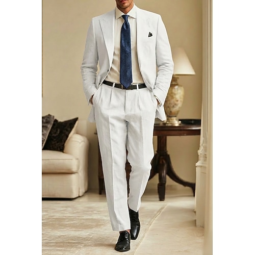 Uomo Completi in Lino Abiti da lavoro Casuale Matrimonio Bianco Rosa Primavera Estate Tuta Bavero classico Moda Quotidiano Tinta unita Vestibilità su misura 2 pezzi Monopetto Due Bottoni
