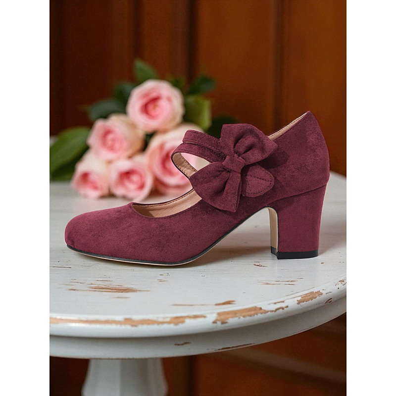 Women's Purple Mary Jane Pumps - Suede Chunky Heel Dress Shoes with Double Bow Straps, 1950s Vintage-Inspired Style for Weddings, Parties and Elegant Everyday Outfits