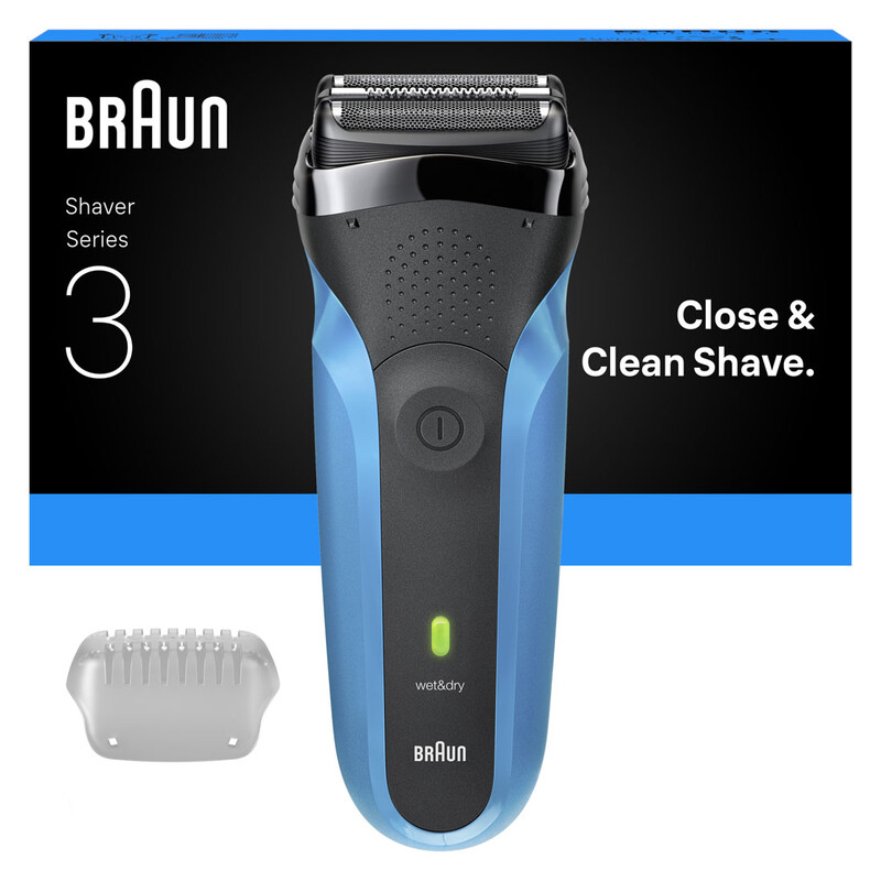 Braun Series 3 310 Electric Wet & Dry Shaver for Men, UK 2 pin plug, Waterproof, Black/Blue