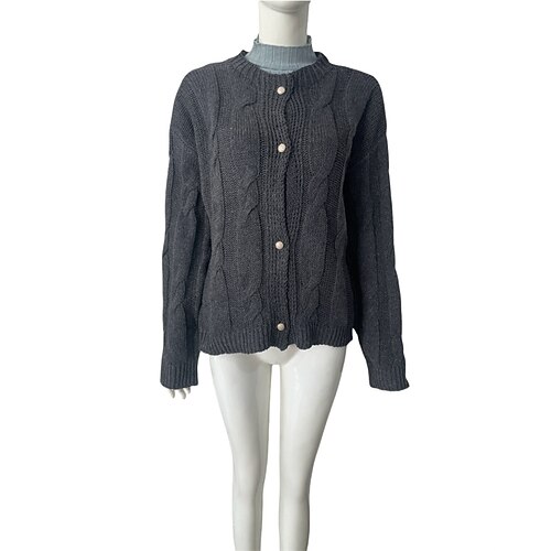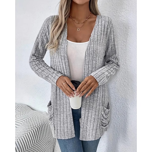 Per donna Cardigan Casual Tinta unica Treccia Scollo a V Tasca Lavorato a maglia Manica Lunga Top Regolari Maglia Ferie Uscire Weekend Grigio Autunno