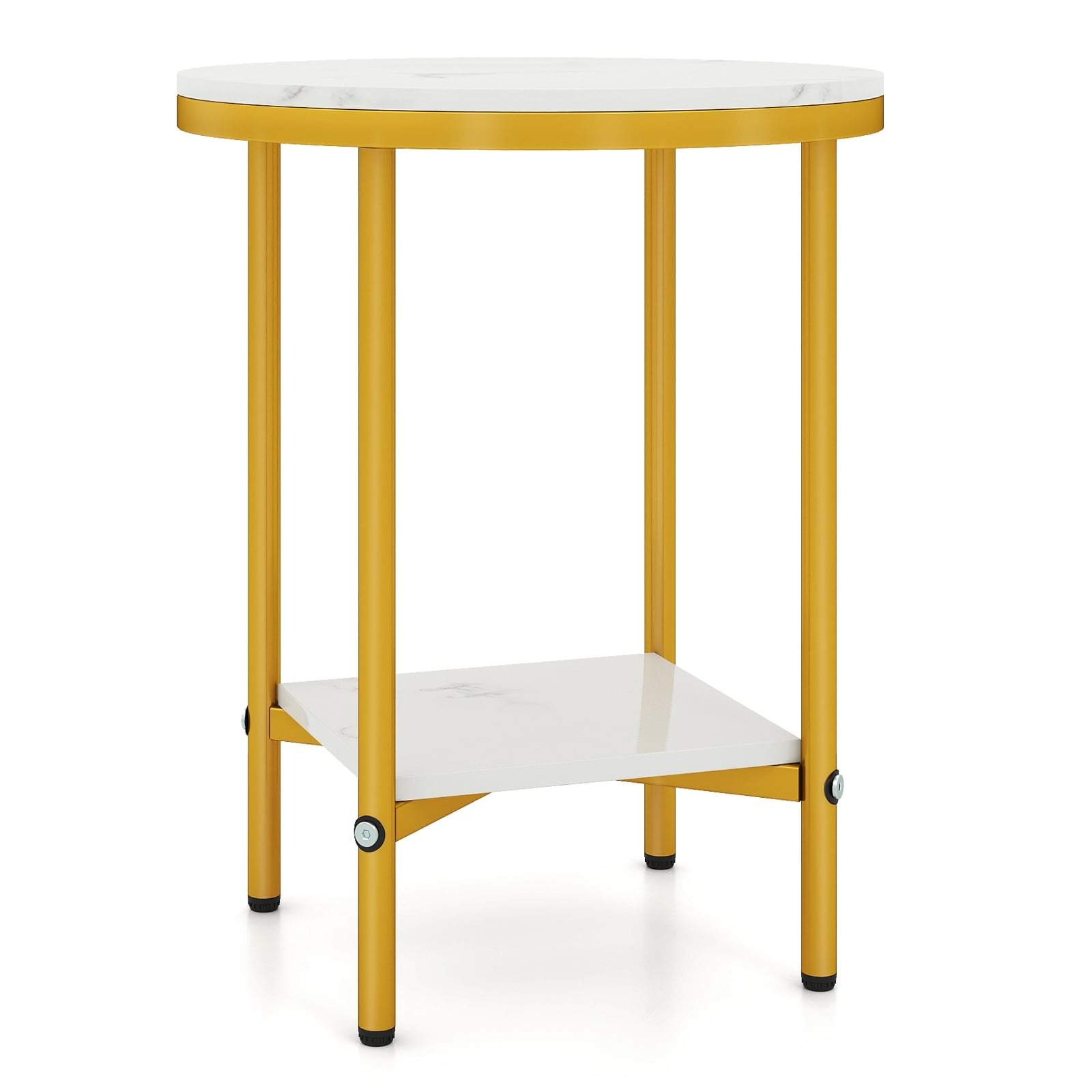 Pyöreä 2-tasoinen sohvapöytä – marmorijäljitelmä, kultainen runko