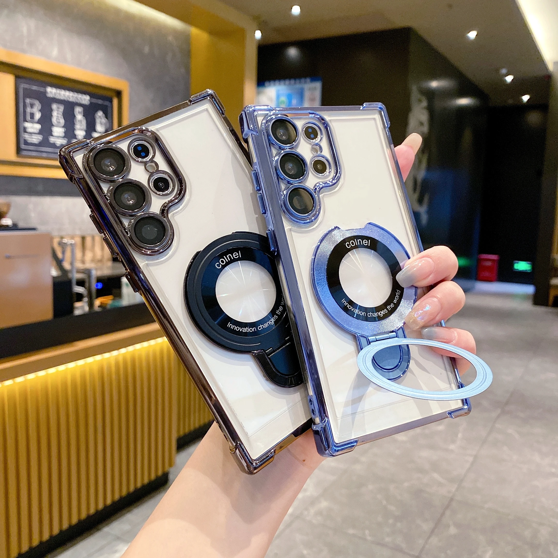 Phone Case For Samsung Galaxy S24 S24 FE S23 S22 S21 Ultra Plus A55 5G A35 5G A25 A15 A34 Back Cover Ring Holder Magnetic Shockproof Retro PC