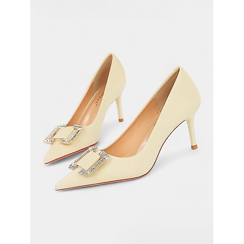 eleganti décolleté da donna in raso verde con fibbia in strass: perfette per matrimoni ed eventi formali