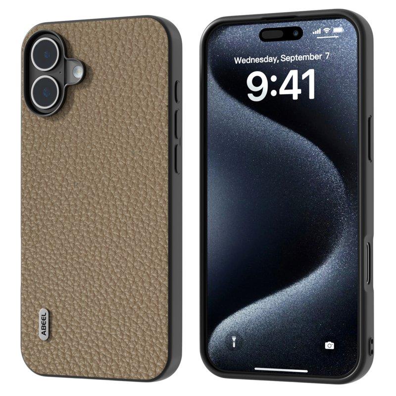 ABEEL Mobilskal till iPhone 16 Plus TPU + Äkta Läder Skydd - Grå