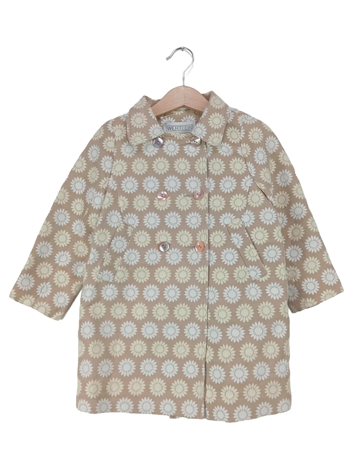WERTFEIN Kinder-Mantel 104 Beige Weiß Blumenmuster Elegant