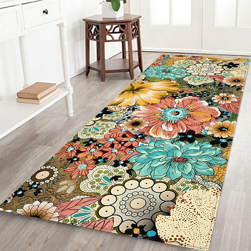 Hallway Runner Rug Bohemian Patterned Flannel Fabric Printed Home Floor Decoration Mat Non Slip Soft Door Mat Entrance Bathroom Floor Rug