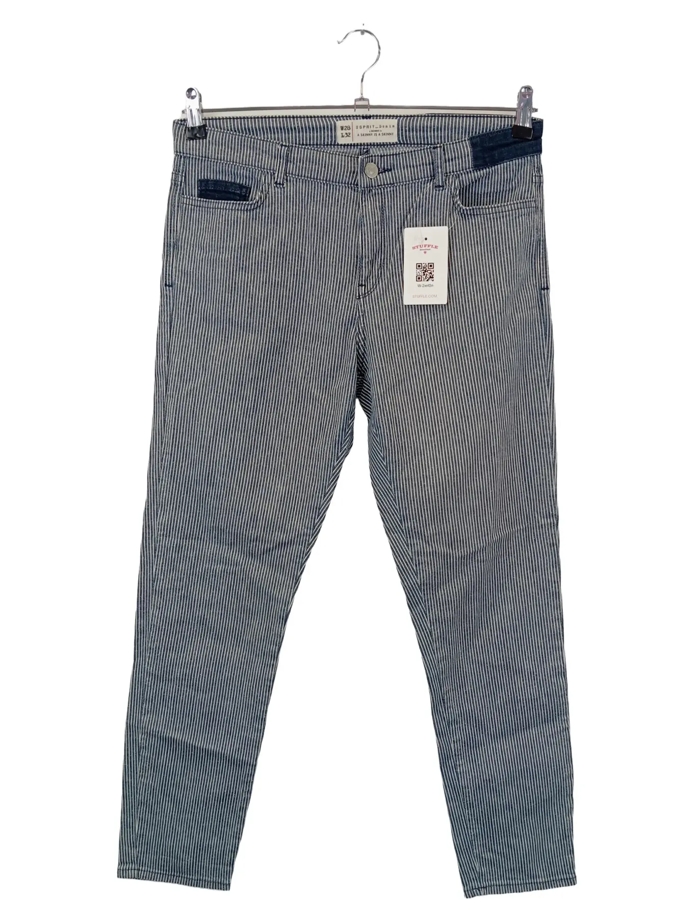 ESPRIT Damen Stoffhose Blau Gestreift W28 L32 Casual