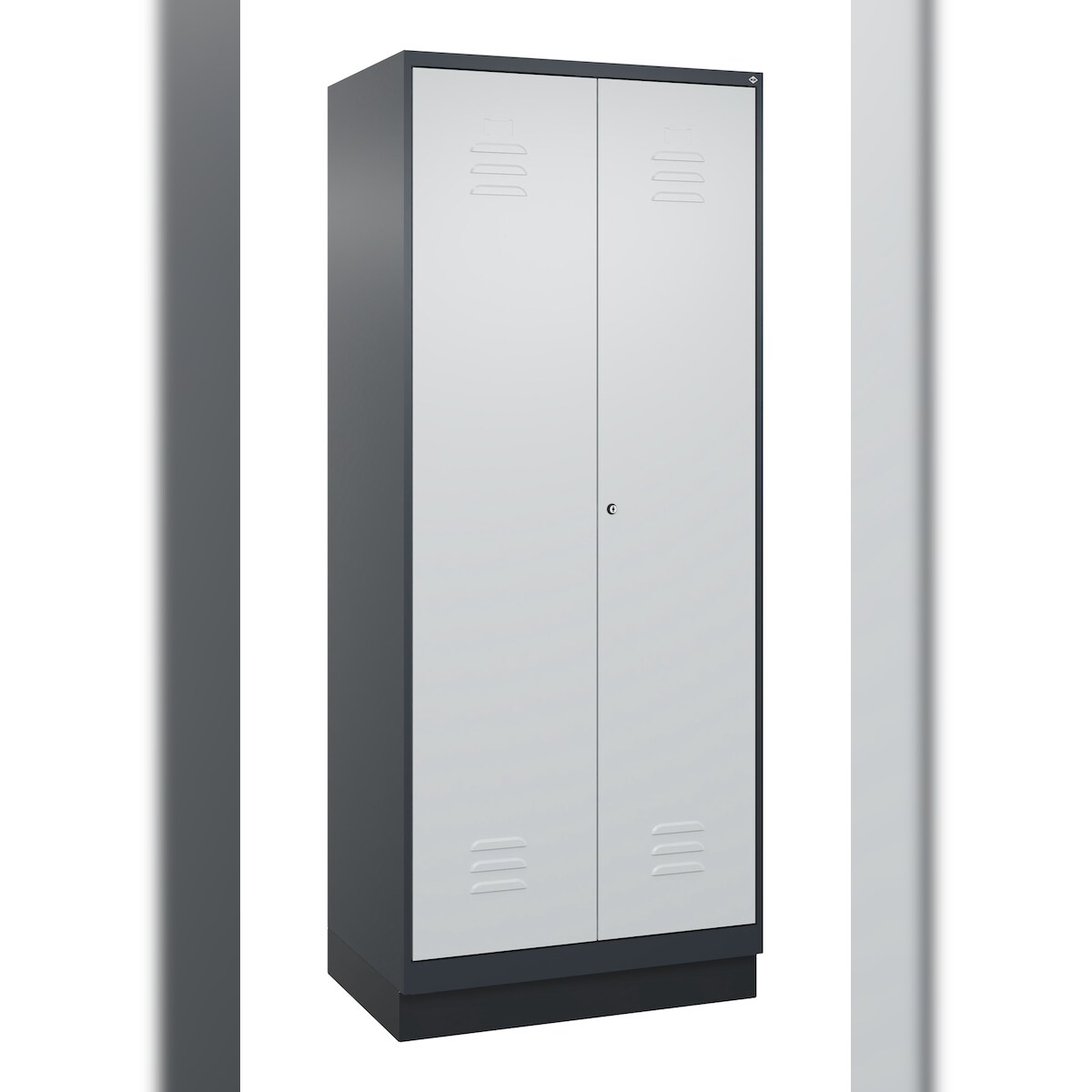 C+P Aufbewahrungs Doppel-Spind Classic PLUS, Sockel, 2 Abteile, 5 Fachböden, HxBxT 195x80x50cm, Zylinderschloss, Anthrazit/Hellgrau von PROREGAL
